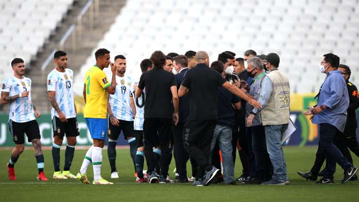 შეგახსენებთ, მატჩი დაწყებული იყო, როდესაც მოედანზე ბრაზილიის ჯანდაცვის მარეგულირებელი სააგენტოს და ფედერალური პოლიციის წევრები შეიჭრნენ. მიზეზი კი არგენტინელების მხრიდან, კორონავირუსთან არსებული რეგულაციების დარღვევა გახდა. დიდი ბრიტანეთიდან ბრაზილიაში შესულ პირებს სავალდებულო კარანტინი უნდა გაეარათ, რაც არგენტინულმა მხარებ არ გაითვალისწინა.