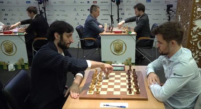 6 ტურის შემდეგ ქართველ და ნორვეგიელ მოჭადრაკეებს 5-5 ქულა აქვთ და ჯგუფს ლიდერობენ.