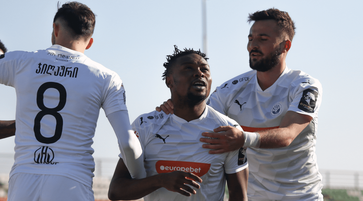 გია გეგუჩაძის შეგირდებმა რამაზ შენგელიაზე ანგარიში სწრაფად გახსნეს. მე-11 წუთზე ვაგნერ გონსალვესის მიერ კუთხურიდან მოწოდებული ბურთი გოდფრი ობოანობამ თავით მასპინძელთა კარში ზუსტად გადაგზავნა.
