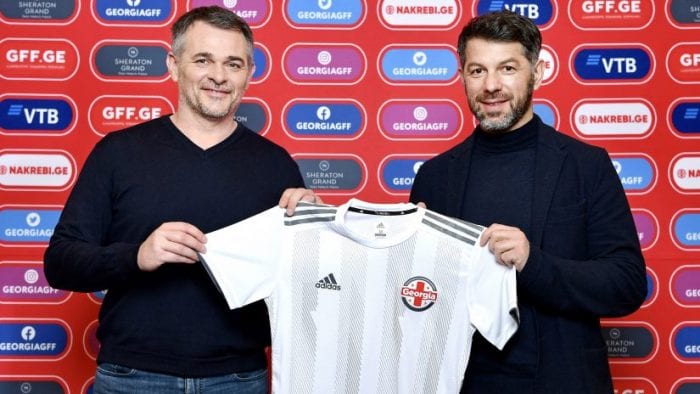 ლევან კობიაშვილმა, ჯვაროსნების ფრანგ სპეციალისტს სიმბოლურად ეროვნული ნაკრების მაისური გადასცა.