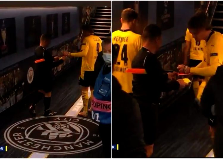 გვერდითმა არბიტრმა, სებასტიან გეორგემ დორტმუნდელთა ნორვეგიელ სუპერვარსკვლავ ერლინგ ჰოლანდს ავტოგრაფი სთხოვა, რამაც ყველას გაკვირვება გამოიწვია.