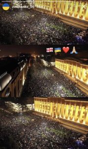უკრაინა-რუსეთს შორის ომი მიმდინარებს. საქართველოს მოქალაქეები უკრაინის მხარდასაჭერად რუსთაველის გამზირზე იკრიბებიან.