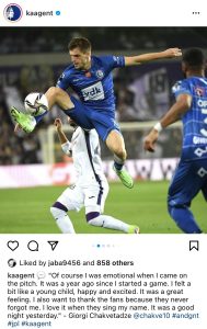 ‘რა თქმა უნდა მოედანზე გამოსვლისას ემოციური ვიყავი. ერთ წელზე მეტი გავიდა, რაც ძირითად შემადგენლობაში არ მითამაშია. პატარა ბავშვივით ბედნიერი და გახარებული ვიყავი. მადლობა გულშემატკივრებს, მათ ყოველთვის ვახსოვდი, არ მივიწყებდნენ. მიყვარს, როცა ჩემს სახელს მღერიან. ეს იყო შესანიშნავი საღამო”. – ჩაკვეტაძის სიტყვებს ბელგიური კლუბი ციტირებს