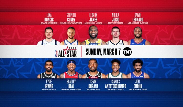 NBA-ში 2021 წლის ყველა ვარსკვლავის მატზე, რომელიც 7 მარტს ინდიანაპოლისში გაიმართება, სტარტერები დასახელდნენ. ყველაზე მეტი ხმა, როგორც მთელი პროცესის მანძილზე, საბოლოოდაც ლებრონ ჯეიმსმა და კევინ დურანტმა მიიღეს.