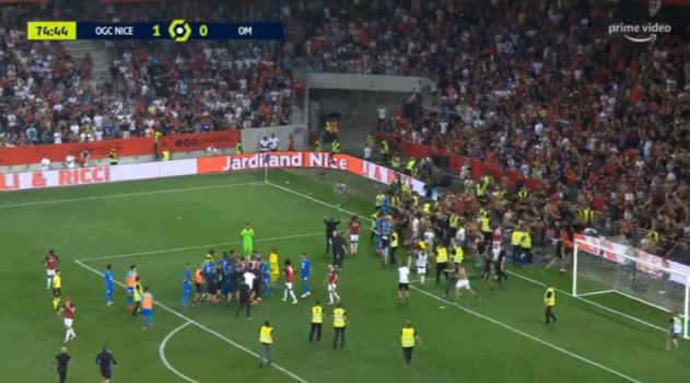 “ნიცას” ქომაგებმა სტუმართა ფეხბურთელს, დიმიტრი პაიეს ბოთლები დაუშინეს, საპასუხოდ კი “მარსელის” ფეხბურთელებმაც იგივე გააკეთეს ფანების მისამართით.