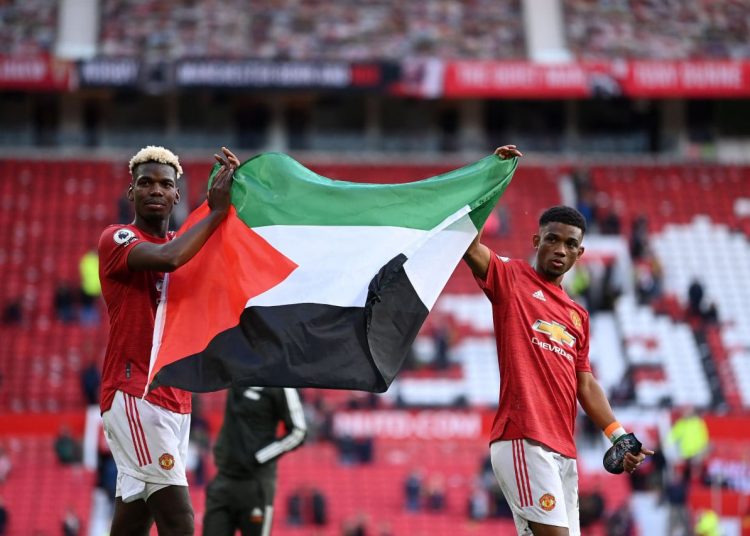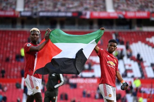 აი, „მანჩესტერ იუნაიტედის“ ორი ფეხბურთელი, ფრანგი პოლ პოგბა და ამად დიალო კი ხელში პალესტინის დროშით გამოჩნდენ, რითიც ახლო აღმოსავლეთში მიმდინარე კონფლიქტი დაგმეს.