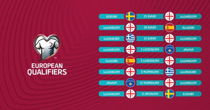 ჯვაროსნები მსოფლიო ჩემპიონატის საკვალიფიკაციო ეტაპს 25 მარტს შვედეთთან გასვლითი მატჩით დაიწყებენ და 11 ნოემბერს იმავე სკანდინავიელებთან თბილისური დაპირისპირებით დაასრულებენ. რაც შეეხება ესპანეთთან ჯახს, ლუის ენრიკეს შეგირდები საქართველოს დედაქალაქში 28 მარტს ჩამოვლენ, ხოლო ჩვენი გუნდი „ფურია როხას“ სტუმრად 5 სექტემბერს შეხვდება.