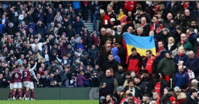 დავიწყოთ იმით, რომ “ბრაიტონისა” და “ასტონ ვილას” თამაშზე გულშემატკივრებმა უკრაინის დროშა გადმოფინეს, ასევე მოწოდება – “არა ომს”.
