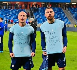 მატჩის შემდეგ საქართველოს ნაკრების კაპიტნებმა, ჯაბა კანკავამ და გურამ კაშიამ მაისურებზე ასახული წარწერით უკრაინას სოლიდარობა გამოუცხადეს.