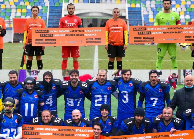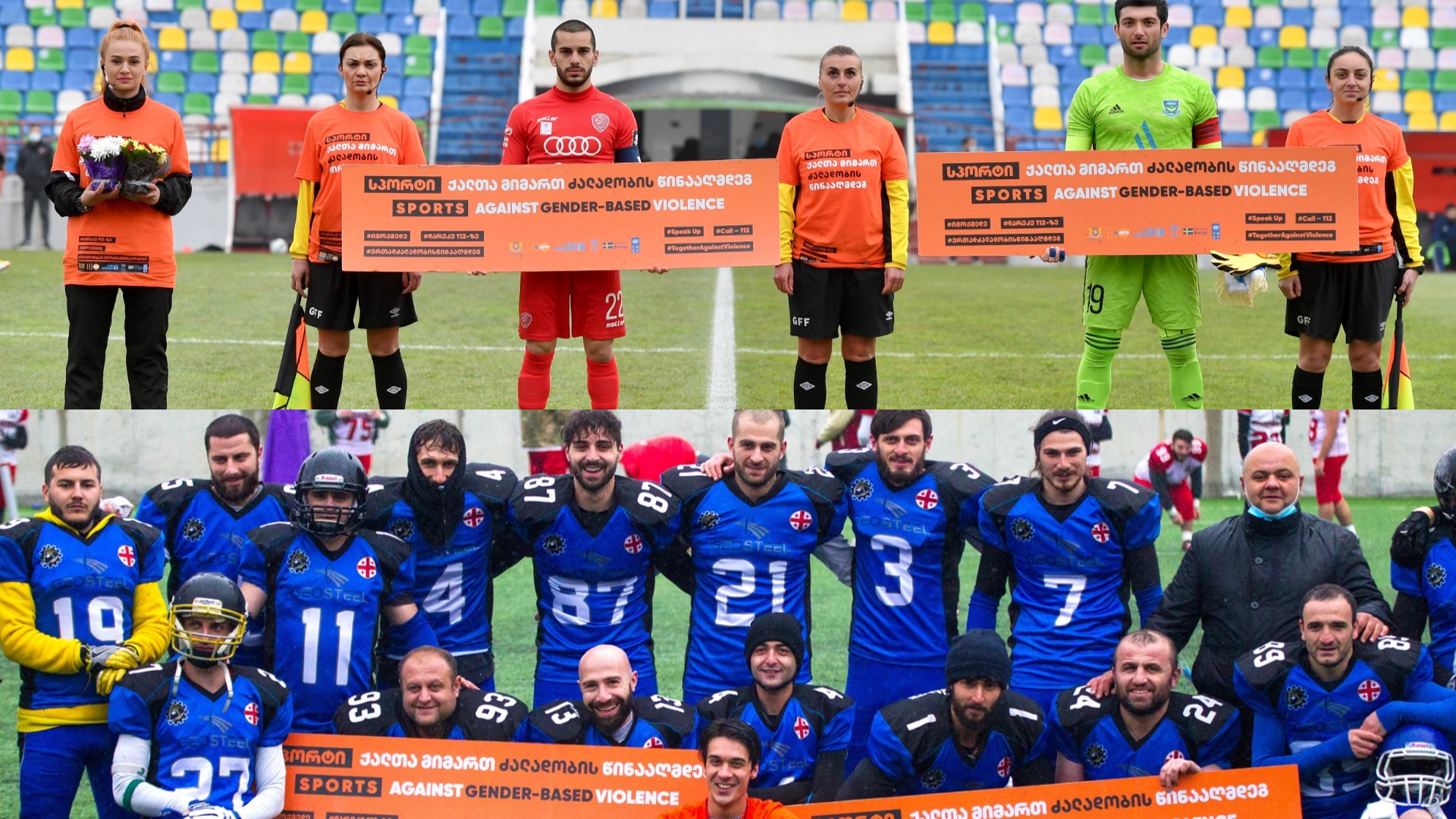 ვაზისუბნის სარაგბო ბაზაზე, ამერიკულ ფეხბურთში ეროვნული ჩემპიონატის ფინალის დასრულების შემდეგ, სადაც ერთმანეთს „თბილისის ჯვაროსნები“ და „რუსთავის ფოლადი“ დაუპირისპირდა, სპორტსმენებმა დაგმეს ოჯახში და გენდერული ნიშნით გამოხატული ძალადობა.