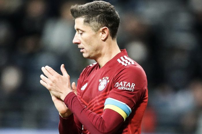 გერმანიის ჩემპიონატის 24-ე ტურის შეხვედრაში მინუხენის “ბაიერნს” რობერტ ლევანდოვსკიმ უკრაინის დროშის ფერის მქონე სამკლაურით უკაპიტნა.