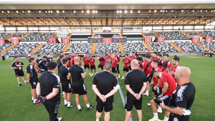 ვარჯიშის დაწყებამდე ეროვნული ნაკრების მთავარმა მწვრთნელმა ვილი სანიოლმა და ვიცე-კაპიტანმა გურამ კაშიამ პრესკონფერენცია გამართეს და მედიის წარმომადგენელთა შეკითხვებს უპასუხეს.