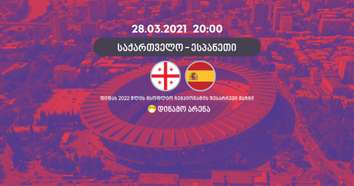 საქართველოსა და ესპანეთის ეროვნული გუნდების მატჩი 28 მარტს, 20:00 საათზე, „დინამო არენაზე“ გაიმართება.