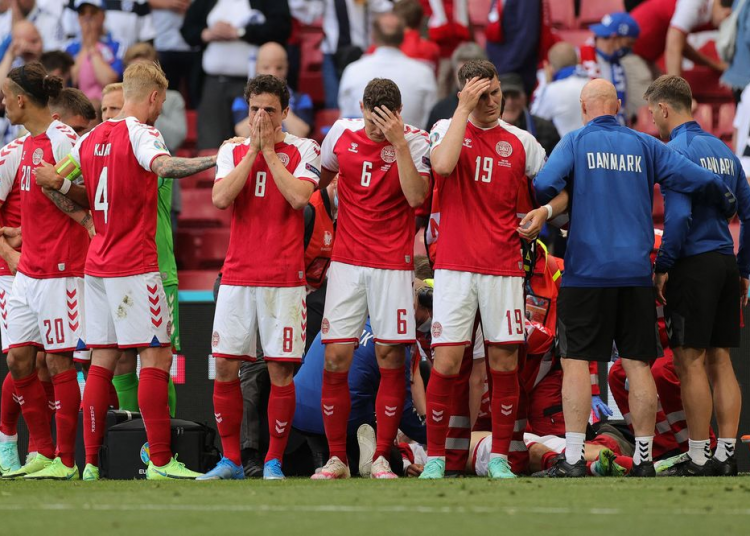 ფეხბურთელს მაშინვე სამედიცინო დახმარება აღმოუჩინეს და რამდენიმე წუთის განმავლობაში ხელოვნურ სუნთქვას უკეთებდნენ, საბოლოოდ ექიმებმა ერიკსენი სამედიცინო დაწესებულებაში გადაიყვანეს, თუმცა მისი ჯანმრთელობის მდგომარეობა უცნობია. მას სავარაუდოდ გულის შეტევა დაემართა.