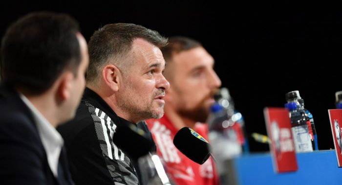 საკვალიფიკაციო ეტაპის პირველი ტურის შეხვედრის მასპინძელ სტადიონზე, საწვრთნელი პროცესის დაწყებამდე საქართველოს ეროვნული ნაკრების მთავარმა მწვრთნელმა, ვილი სანიოლმა და გურამ კაშიამ პრესკონფერენცია გამართეს.